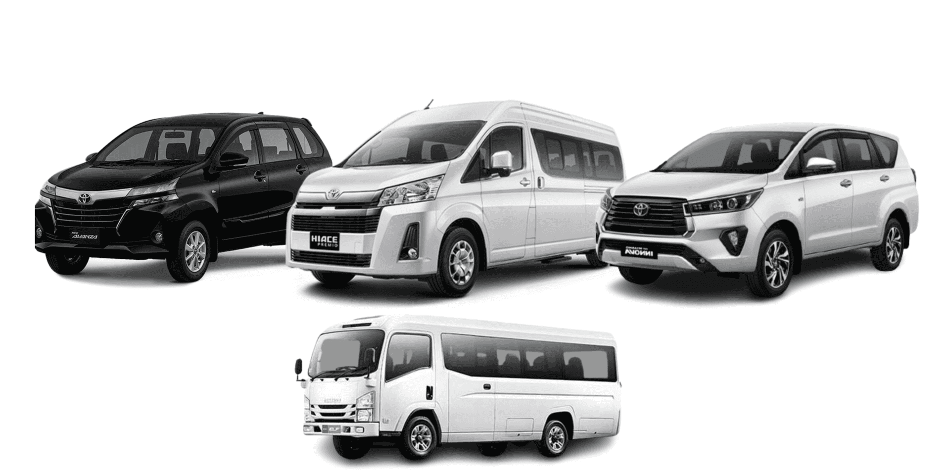 Armada kami diantaranya Toyota Hiace, Innova Reborn, Elf Giga, All New Livina, Alphard, Avanza, dan Luxio. Dengan dukungan dari driver handal kami membuat one class travel sudah mendapat kepercayaan dari banyak pelanggan dari berbagai kota diseluruh wilayah Indonesia.